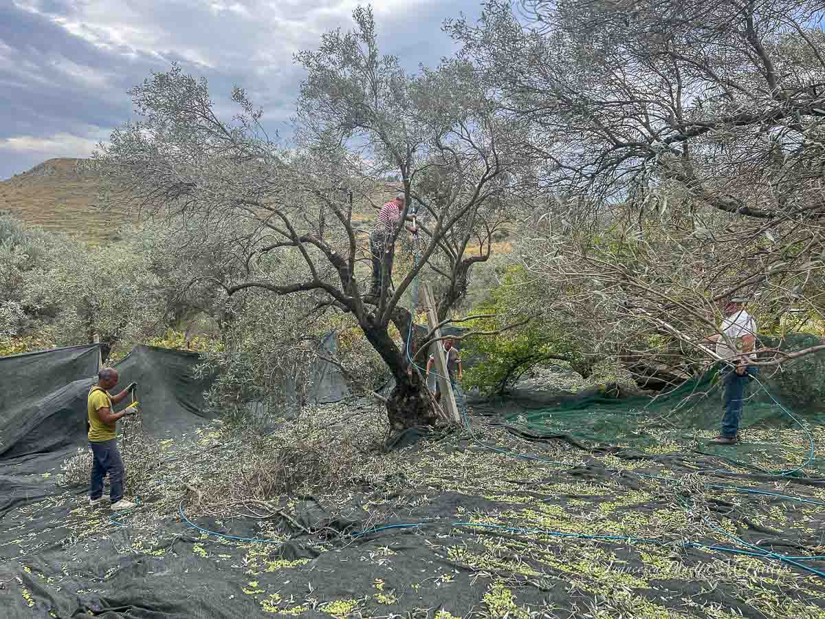Our olive trees start flowering in the early spring and as the summer months approach, small olive fruits become visible on the trees. The fruits start out green and then progress to a purple color. The olive fruits become black when they are fully ripened.